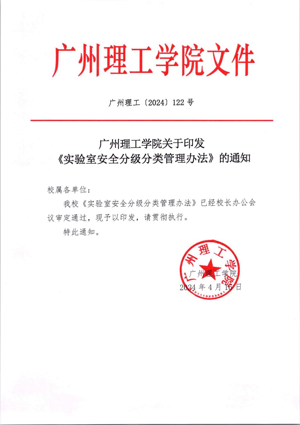 关于印发《实验室安全分级分类管理办法》的通知(广州理工〔2024〕122号).pdf