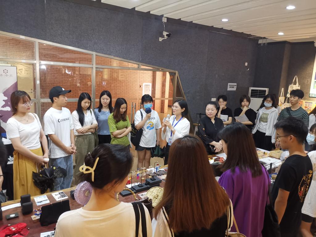 为促进成果转化,工商管理学院、机电工程学院组织市场营销、电子商务、工业设计专业19个班共1000余名学生分批参观了设计展览。艺术学院副院长李丽丹、办公室主任颜冬果、艺术系主任欧阳丽萍以及作品的设计者为观展的学生详细讲解了展品的性质与特点。