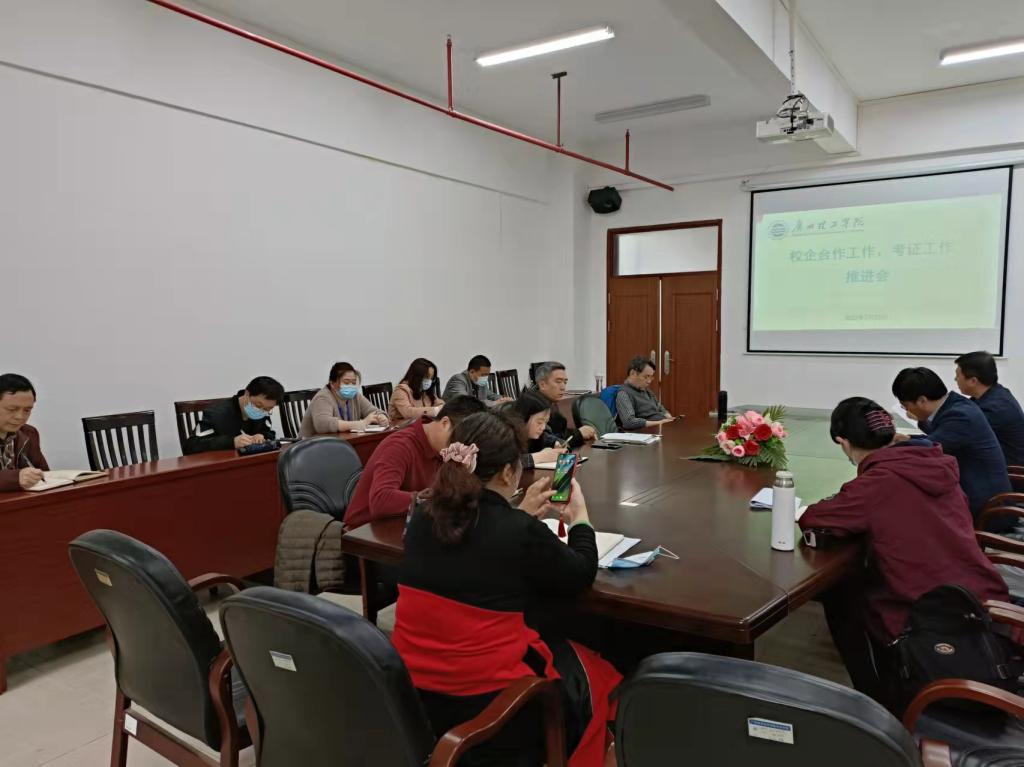 (李晓仪)3月25日下午,由实验管理中心组织的校企合作工作、考证工作推进会在行政楼201会议室举行。常务副校长伏焕昌、社会服务办公室主任魏东婷、实验管理中心副主任高文财、各二级学院院长、副院长及相关老师参加了会议。