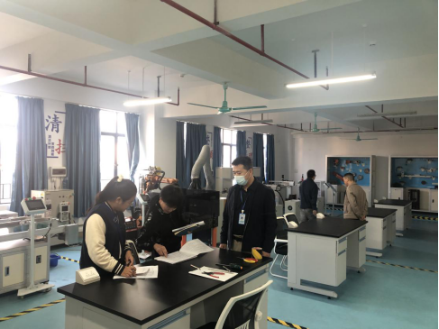 本次检查实验室情况总体良好,但部分实验室存在一定的安全隐患,如开关盒挡板缺失、地面渗水、堆放杂物、线槽破损、线路杂乱、卫生问题等,需要及时报修整改。张世梅副校长指出,各二级学院要重视实验室安全工作,对实验室人员、实验教学师生加强安全教育,提高安全防范意识。各责任部门按整改要求抓紧时间积极落实,消除实验室安全隐患。