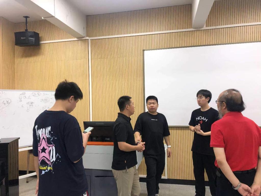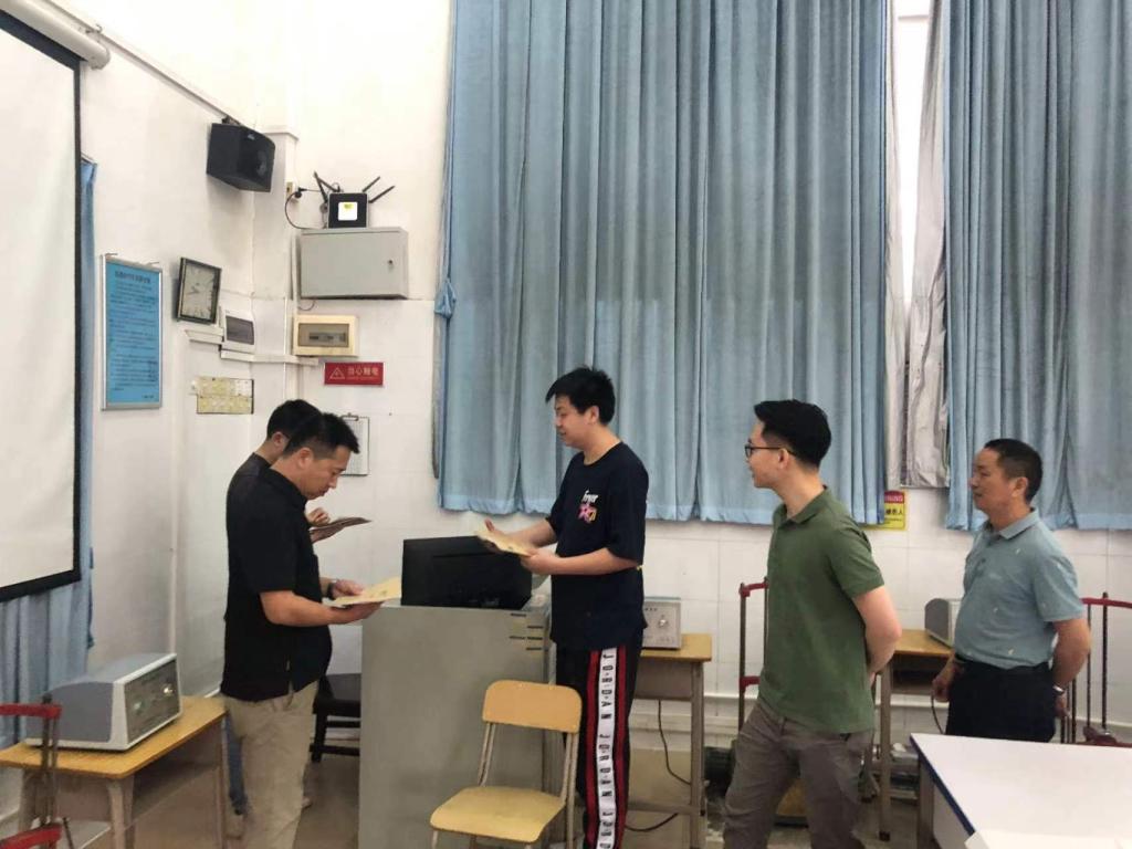 图1 实验室与设备管理中心副主任高文财(左一)检查实验室记录本