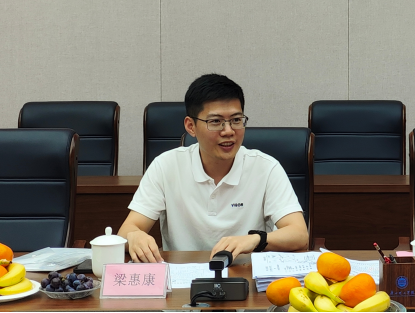 双方在工程楼一楼会议室进行交流,会议伊始,常务副校长伏焕昌作欢迎致辞,随之结合视频影像介绍了学校的办学、师资等基本情况,重点展示了校企合作产教融应用型人才培养模式的探索和实践,教师学生参加学科竞赛的成果,学校实践教学基地及实验室建设。然后梁惠康部长简要介绍广州市职业技能指导中心职能及情况,并对学校申报9个职业工种材料进行指导。
