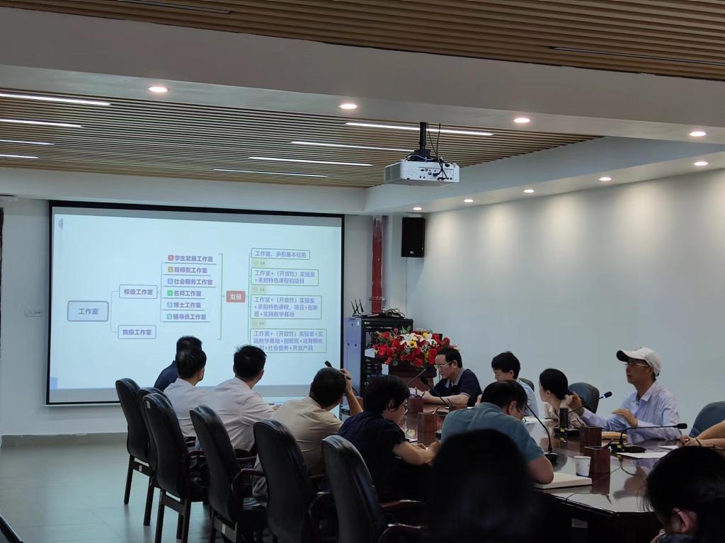 下午三点,参会人员有校董会、常务副校长伏焕昌、张世梅副校长及相关部门负责人,会议由伏焕昌常务副校长主持。首先高文财副主任就工作室基本情况、考核管理、立项结项、建设经费等方面进行阐述,并对工作室未来发展方向和模式提出方案和畅想。