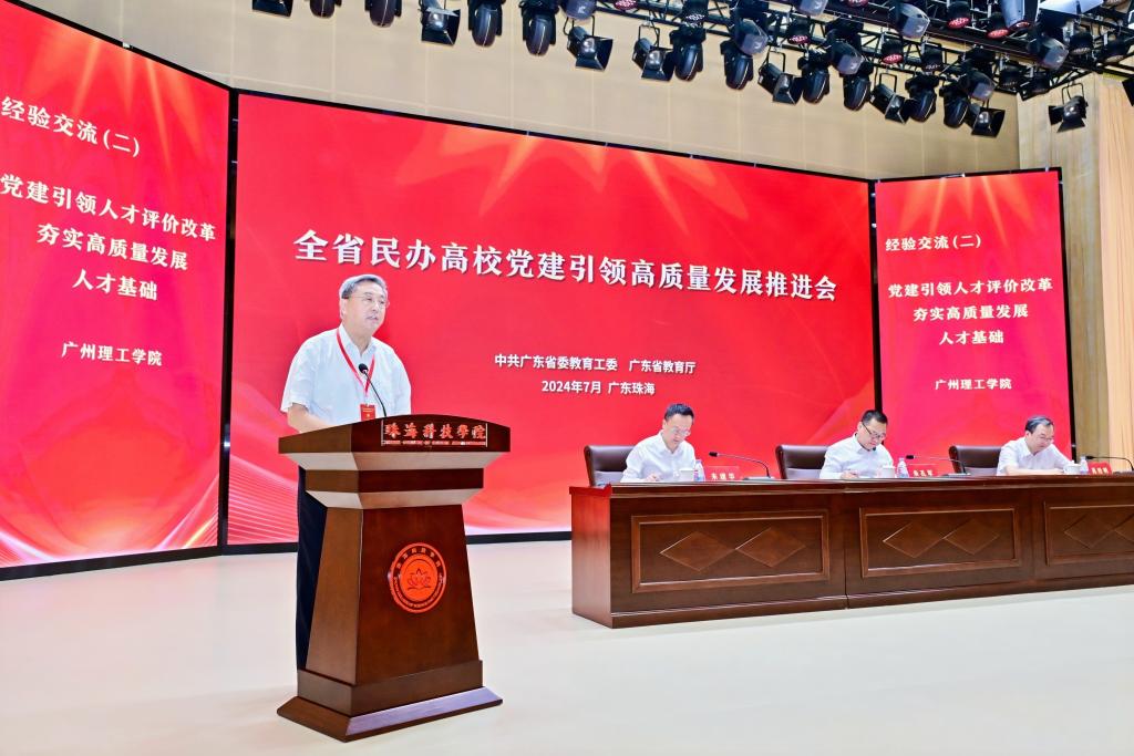 (高敏)7月8日至7月9日,全省民办高校党建引领高质量发展推进会在珠海召开。williamhill英国官网校长胡社军、党委书记黄圣诚、执行董事魏凤琴参加会议。胡社军校长作为全省民办高校代表在会上以《党建引领人才评价改革 夯实高质量发展人才基础》为题作经验交流发言。