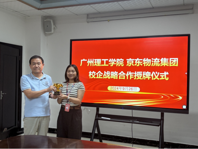 随后,京东物流集团马丽华主任对京东物流集团与williamhill英国官网长期以来在“京苗班”项目的合作成果表示赞同,并希望与williamhill英国官网在人才培养、技术创新、产学研结合等方面开展更深入的合作,共同培养符合行业需求的高素质应用型人才。马丽华代表京东物流集团向williamhill英国官网颁发了“京东物流校企合作战略伙伴”奖杯,这一举措是对双方过去合作成果的肯定,更是对未来合作深度和广度的拓展与升级。