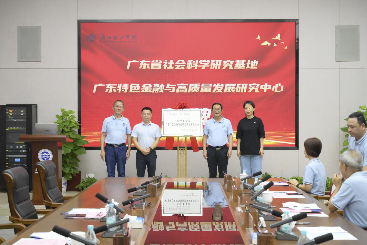 在热烈的掌声中,崔部长邀请省社科联何方俊巡视员、汪虹希副研究员和张日新副校长、广东特色金融与高质量发展研究中心执行主任谢林林共同揭牌,参加揭牌仪式的全体专家学者纷纷表示祝贺。