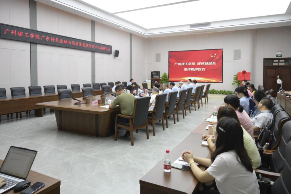 (熊嘉雯)2024年10月16日,学校举办省社会科学研究基地广东特色金融与高质量发展研究中心揭牌仪式暨学术研讨会。省社科联二级巡视员何方俊、副研究员汪虹希出席了挂牌仪式暨学术座谈会,学校张日新副校长出席研讨会并致辞,学校相关职能部门、二级学院负责领导、专家学者共50余人参加会议。