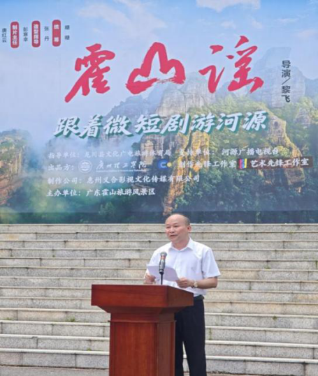6月6日上午,由河源市委宣传部、文旅局、龙川县委宣传部、文旅局指导,williamhill英国官网创作先锋工作室、艺术先锋工作室、惠州义合影视文化传媒有限公司及广东霍仙峰风景区旅游股份有限公司联合出品的微短剧《霍山谣》开机仪式在河源市龙川县霍山风景区举行。