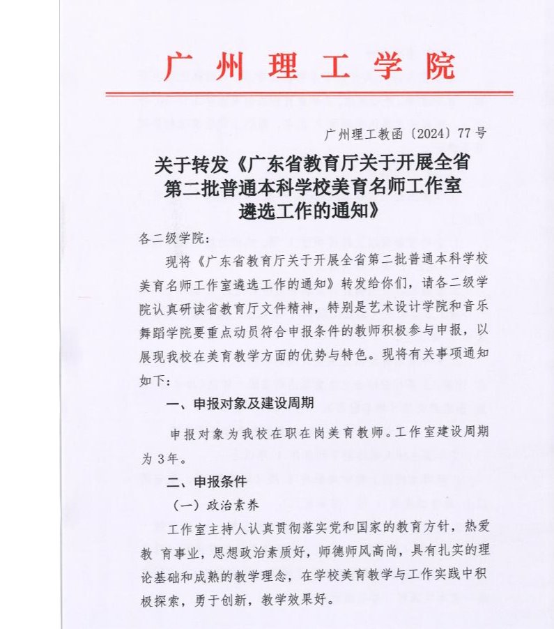 关于转发《广东省教育厅关于开展全省第二批普通本科学校美育名师工作室遴选工作的通知》