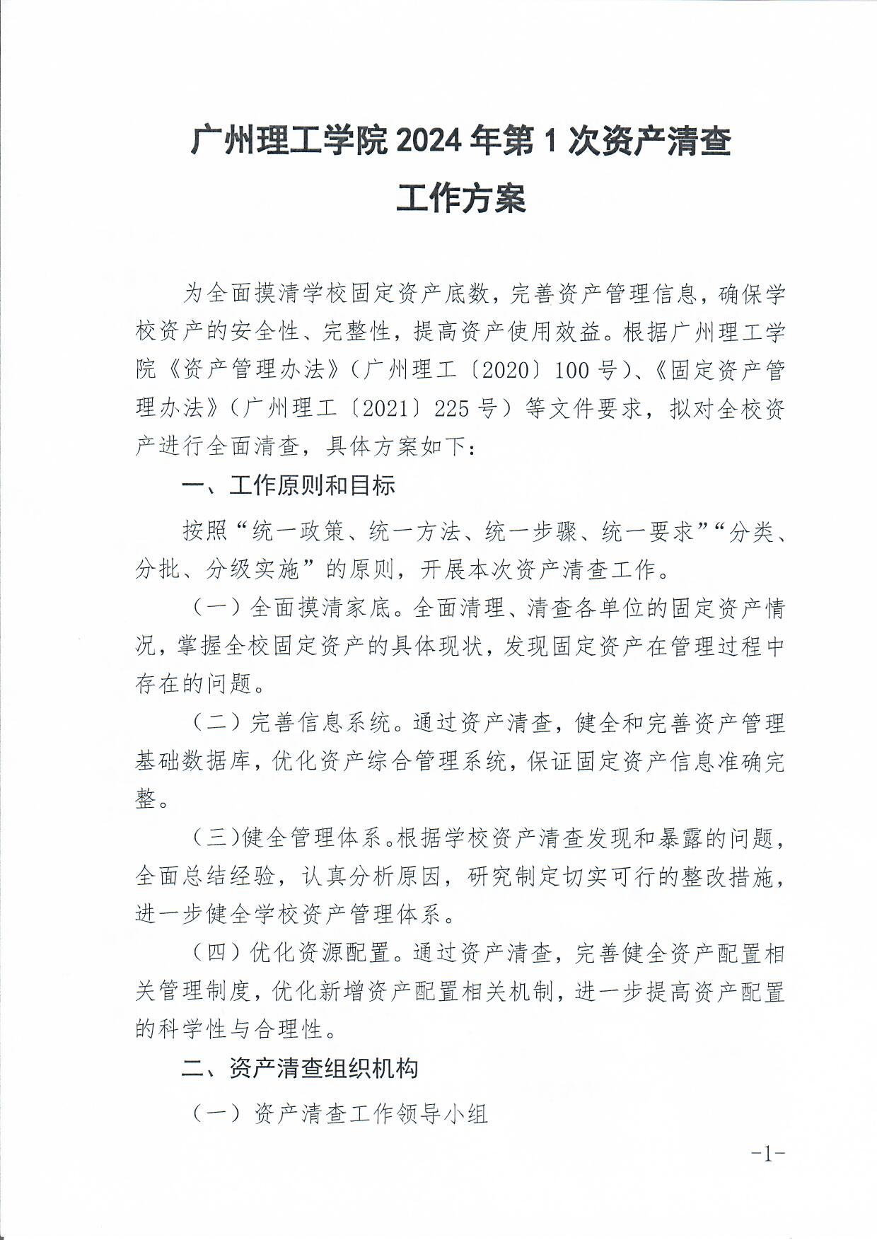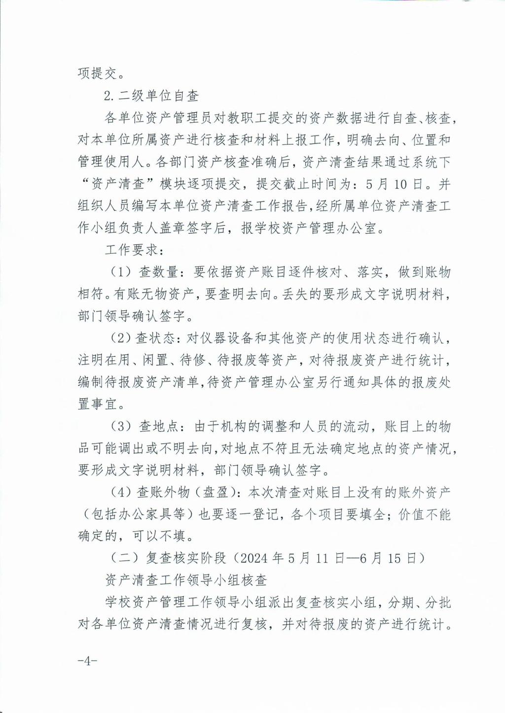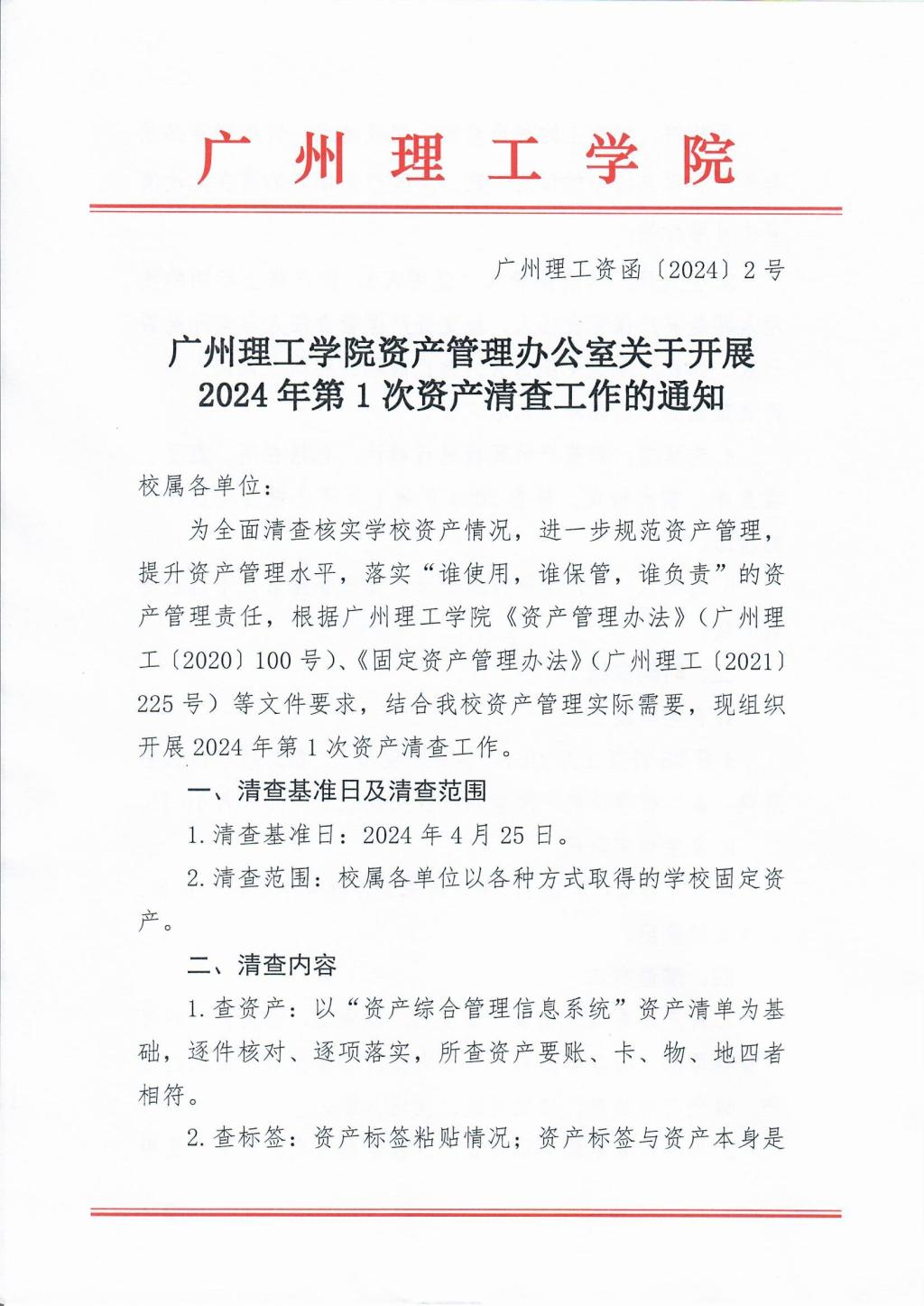 关于开展2024年第1次资产清查工作的通知