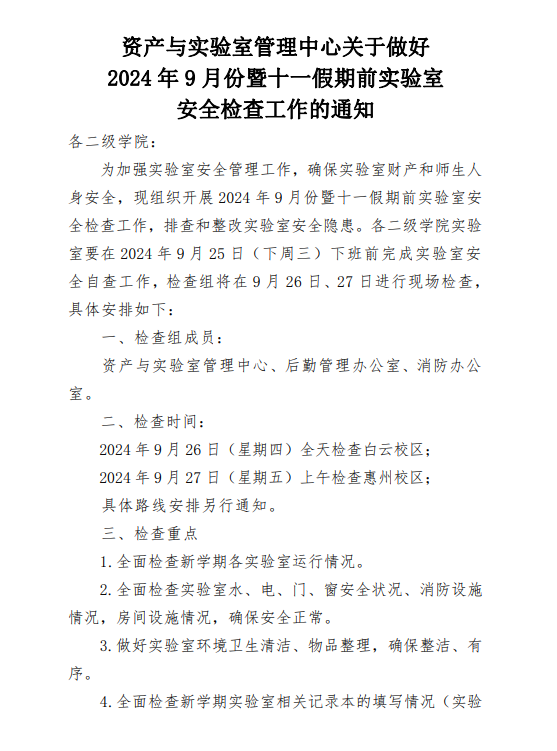 williamhill英国官网,英国威廉希尔官网关于做好2024年9月份暨十一假期前实验室安全检查工作的通知