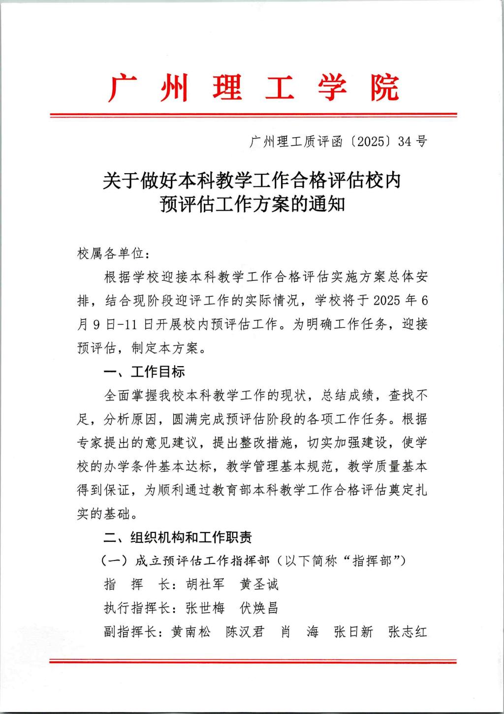 关于做好本科教学工作合格评估校内预评估工作方案的通知
