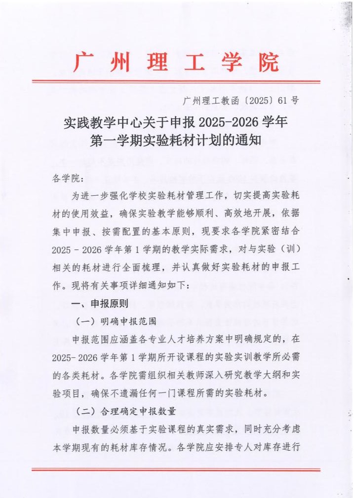 广州理工教函〔2025〕61号 williamhill英国官网关于申报2025-2026学年第一学期实验耗材计划的通知.pdf