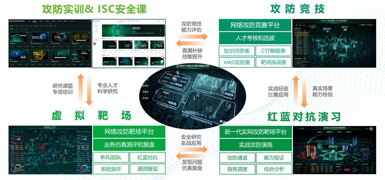 1.360安全攻防实验室:基于360安全大脑平台、360网络安全靶场、360网络攻防训练及平台、360网络攻防竞赛平台,搭建模拟真实网络攻防环境,开展红蓝对抗、CTF竞赛、漏洞复现等实战训练。