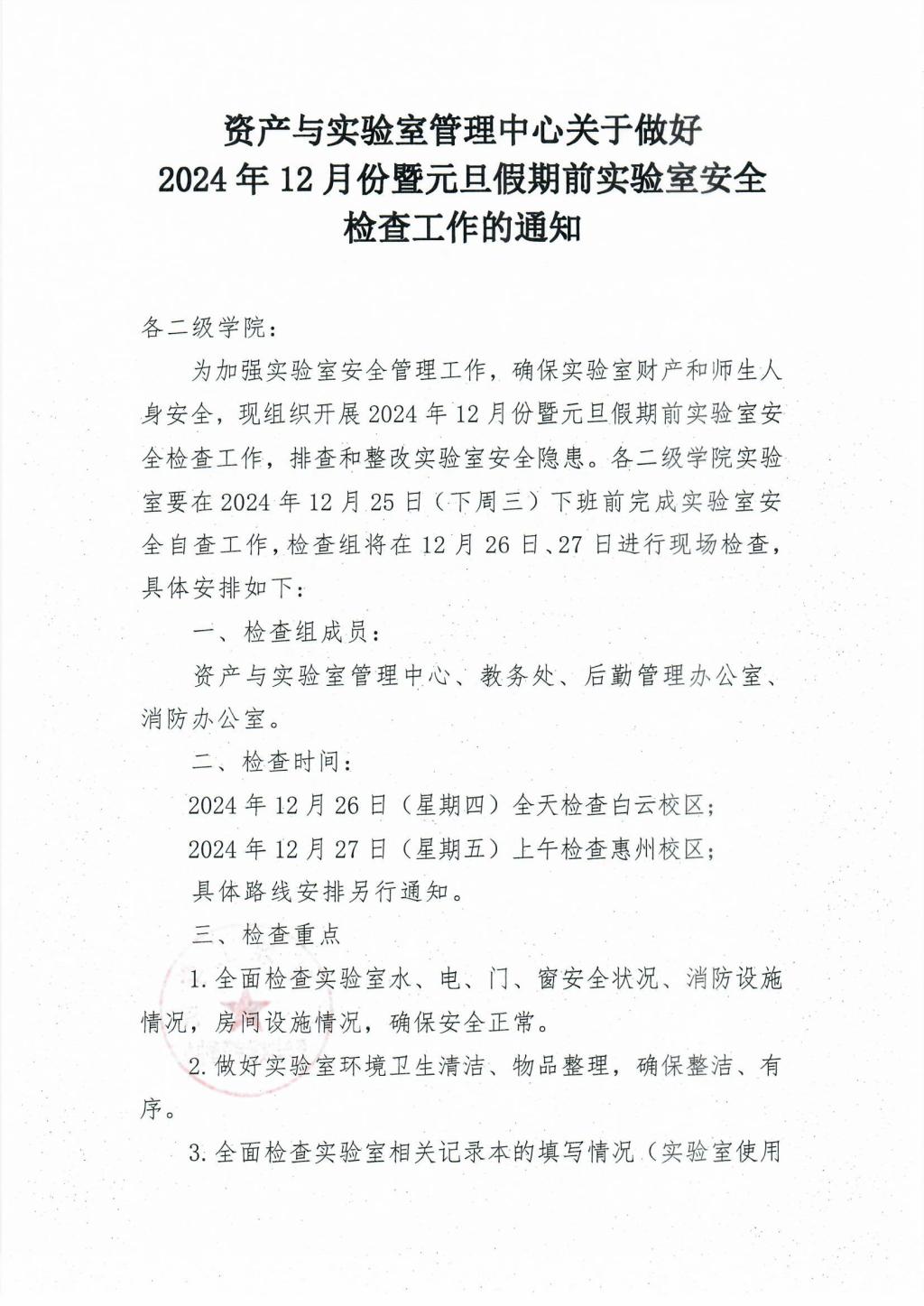 williamhill英国官网,英国威廉希尔官网关于做好2024年12月份暨元旦假期前实验室安全检查工作的通知
