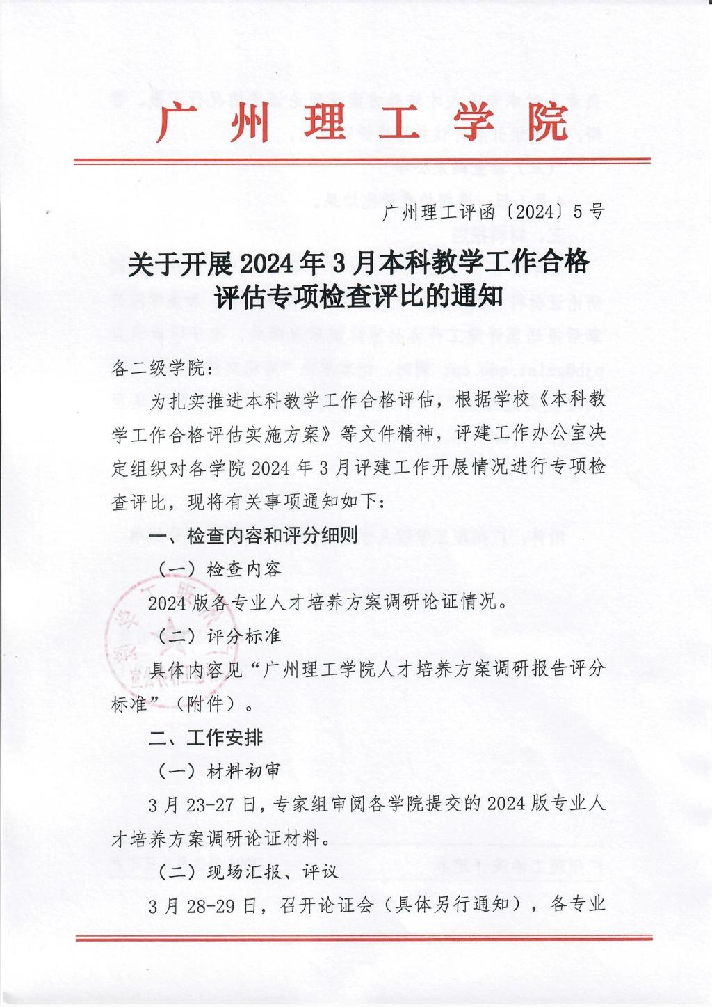 关于开展2024年3月本科教学工作合格评估专项检查评比的通知
